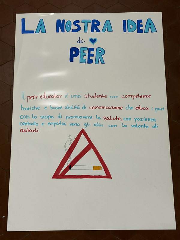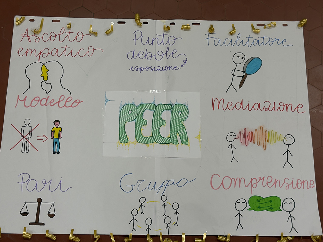 Attraverso il confronto e il lavoro condiviso, sono emerse le motivazioni che li hanno portati a scegliere di diventare un Peer, le risorse che sentono di poter mettere in gioco e le debolezze che li attraversano, provando a immaginare come queste possano trasformarsi in possibilità. Alla fine di questo lavoro sono rimaste tracce visibili: quattro cartelloni che raccontano un’idea di Peer costruita insieme, non data per scontata.