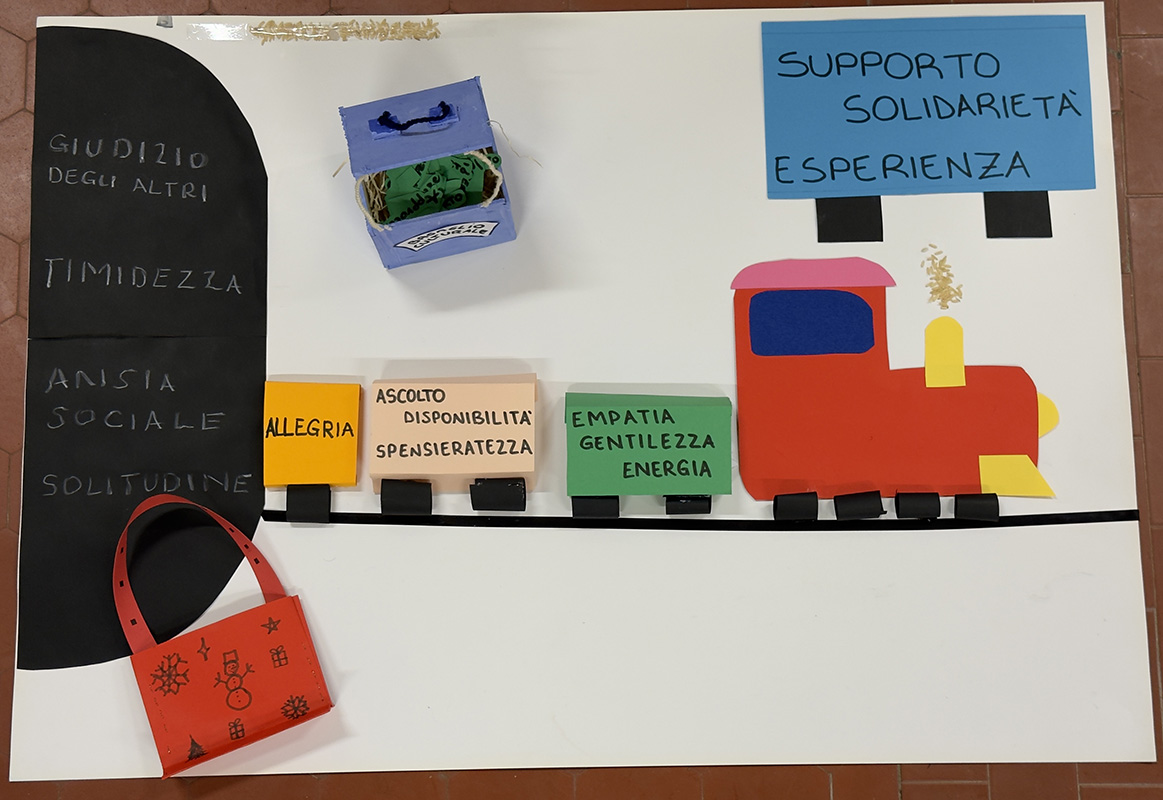 L’ultimo passaggio ha riguardato i luoghi. Perché la salute non vive solo nelle parole, ma anche negli spazi che attraversiamo ogni giorno. Si è parlato dunque di scuola: degli spazi che fanno stare bene e di quelli che fanno stare male. Poi queste riflessioni sono state rielaborate in forma espressiva.
