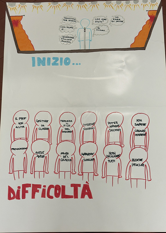 Poi il pensiero si è spostato dall’interno all’esterno, dalla riflessione all’azione. Che cosa succede quando un Peer entra in una classe? Come si parla, come si ascolta, cosa si fa quando qualcuno provoca, quando qualcuno si annoia, quando qualcuno invece ha voglia di esserci? Attraverso un gioco di ruolo, i ragazzi hanno abitato questi personaggi, scoprendo che cambiare punto di vista cambia anche il modo di stare nello spazio e nelle relazioni. Anche in questo caso il lavoro si è tradotto in un prodotto concreto: cartelloni che raccolgono le difficoltà incontrate, le emozioni emerse, le fragilità riconosciute, ma anche le strategie immaginate per affrontarle e le opportunità che queste stesse situazioni possono offrire.
